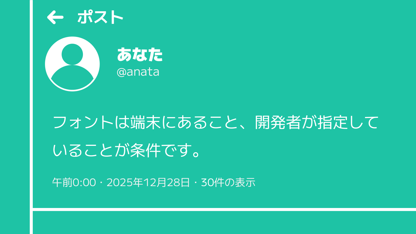 あなたの端末にインストールされているフォントのうち、開発者が指定したフォントが反映されます。
